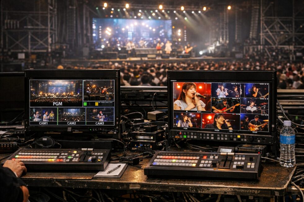 先日、横浜にて行われたフェスの中継業務をご依頼いただき、CA(カメラアシスタント)として参加しました。今回は、その際に感じたスイッチャーの「画出し」と「配信」の違いについて書きたいと思います。